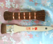 京都の内藤商店で手に入れた、棕櫚製キリワラ型たわし。サイズはイロイロあります。お台所で使うのはもちろんのこと、洗濯に使うもよし、画材にもなりそう…。下の刷毛は手触りもよく画材になりそうと買いました。お店の奥さんが奥から短い柄のものを出してきてくれました。 |